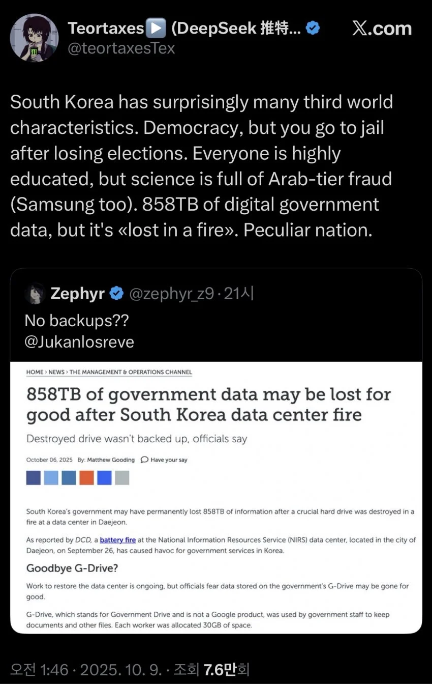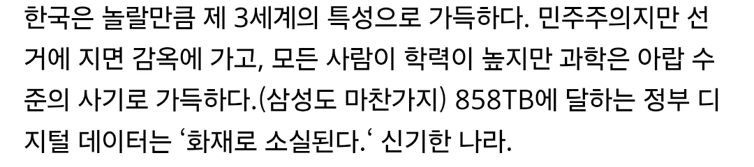 중국 ai 딥시크 개발자가 생각하는 한국 댓글 0 조회 556 10.10 16:42 작성자 : 더한마음 좋아요 팔로우 게시글 보기 어 그게 가신분들은 다 그럴만한 사정이.. 갈 사람이 안가는 너희가 문제 아닐까.. 더한마음님의 최신 글 10.10 배터리 문제를 해결한 스마트폰 10.11 권은비, 일본 공연 꼭노 영상 10.10 한국의 흔한 자리찜 아이템 10.10 잘때 휴대폰 하지말라는 디씨인 10.10 노벨평화상을 수상한 마리아 코리나 마차도는 누구인가? 10.10 오늘 총쏘고 테이저건쏘고 난리남 10.10 슈카코믹스 대황니니의 "한미반도체" 근황 10.10 궁지에 몰린 백종원 연돈볼카츠 근황 10.10 노벨 평화상 사전 유출 의심 정황 10.10 어플 사진 믿고 여자 만나러 감
