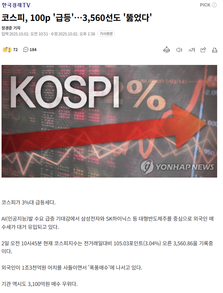 코스피, 100p "급등" 3,560선도 "뚫었다" 댓글 0 조회 599 10.02 19:41 작성자 : 돌잔치앤가반나 좋아요 팔로우 게시글 보기 돌잔치앤가반나님의 최신 글 10.03 장기가 손상되는 원인 10.03 핀란드가 내향인의 천국인 이유 10.03 성과급이 1,700만원인 퐁퐁이햄 10.03 남자가 많은 나라와 여자가 많은 나라 10.03 국내기업 시총 순위 TOP 50 10.03 8급 공무원 남자의 한탄 10.03 30대에 인간관계가 정리되는 이유 10.03 의외로 전기로 할 수 있는데 안하는 것 10.03 해외에서 예전보다 탐욕스러워졌다고 까이는 게임사 10.03 요즘 영포티 아재룩 3대장