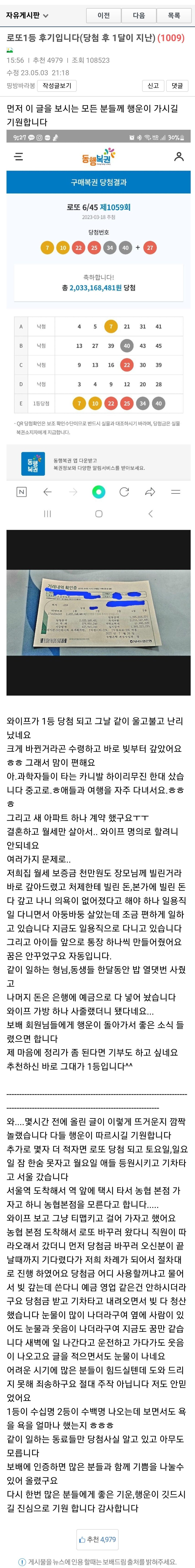 보배드림에 올라온 로또 1등 당첨된 사람 후기