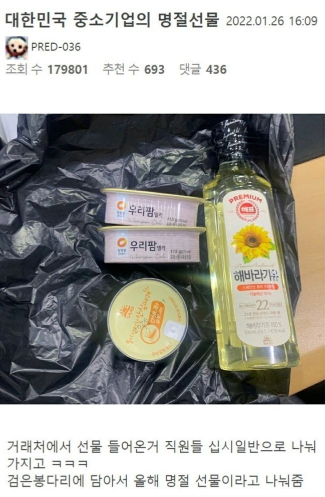 중소기업 명절선물 인증 레전드 댓글 0 조회 583 3시간전 작성자 : 네이마르로 좋아요 팔로우 게시글 보기 네이마르로님의 최신 글 10.03 한국남자 -일본여자 커플의 궁합 10.03 존예로운 일본 레이싱걸 눈나 10.03 5살이 부르는 100명의 위인들 10.03 공무원들이 일하다가 인생 조지는 케이스 10.03 민생소비쿠폰 사용 안된다는 재래시장 매장 10.03 서양인 관광객이 평가한 한국 음식 10.03 어메이징.. 분당 집값 근황 10.03 한국에서 매출 1000억 이상 패션 브랜드 순위 10.03 부모가 자식에게 줄 수 있는 가장 위대한 유산 10.03 재미로 보는 역사적 인물들의 전투 승률 통계