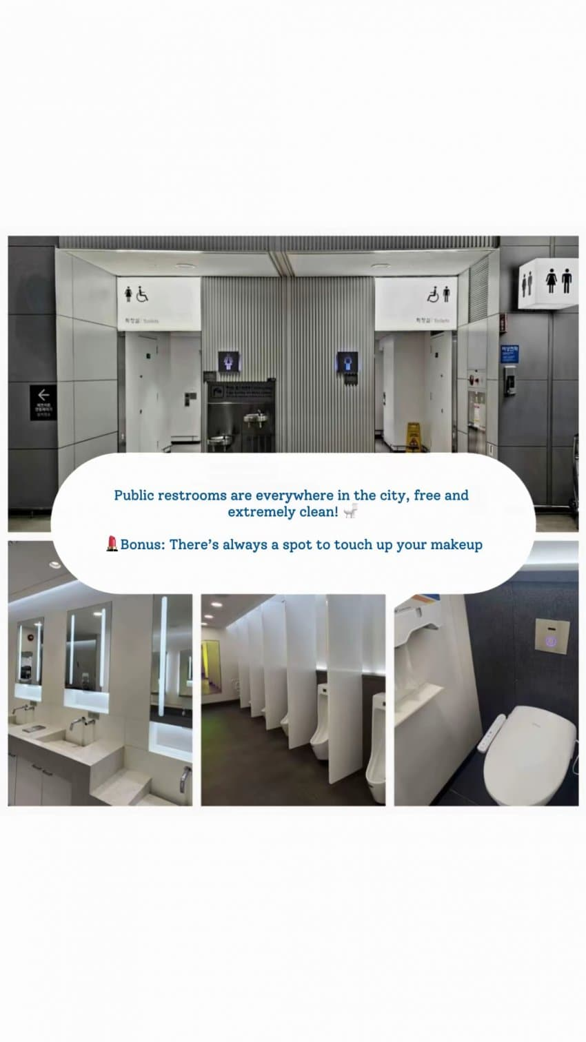 공중화장실은 어디에나 있으며 무료이고 매우 깨끗함
