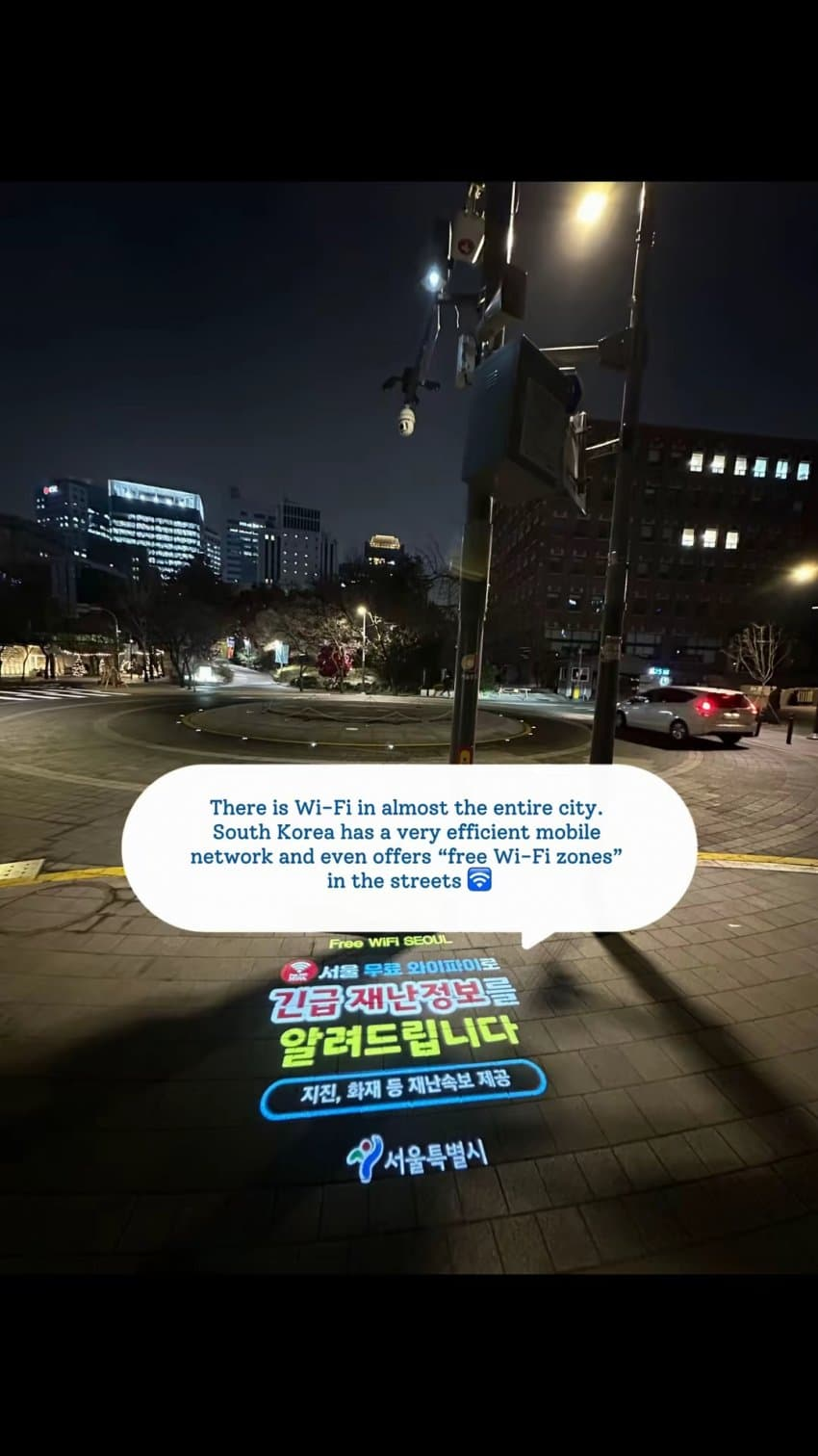 한국은 효율적인 모바일 네트워크를 가지고 있으며 거리에서도 무료 와이파이를 제공함