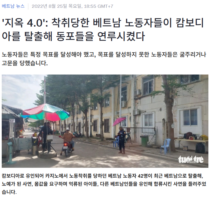캄보디아 카지노에서 대규모 탈출하는 베트남인들