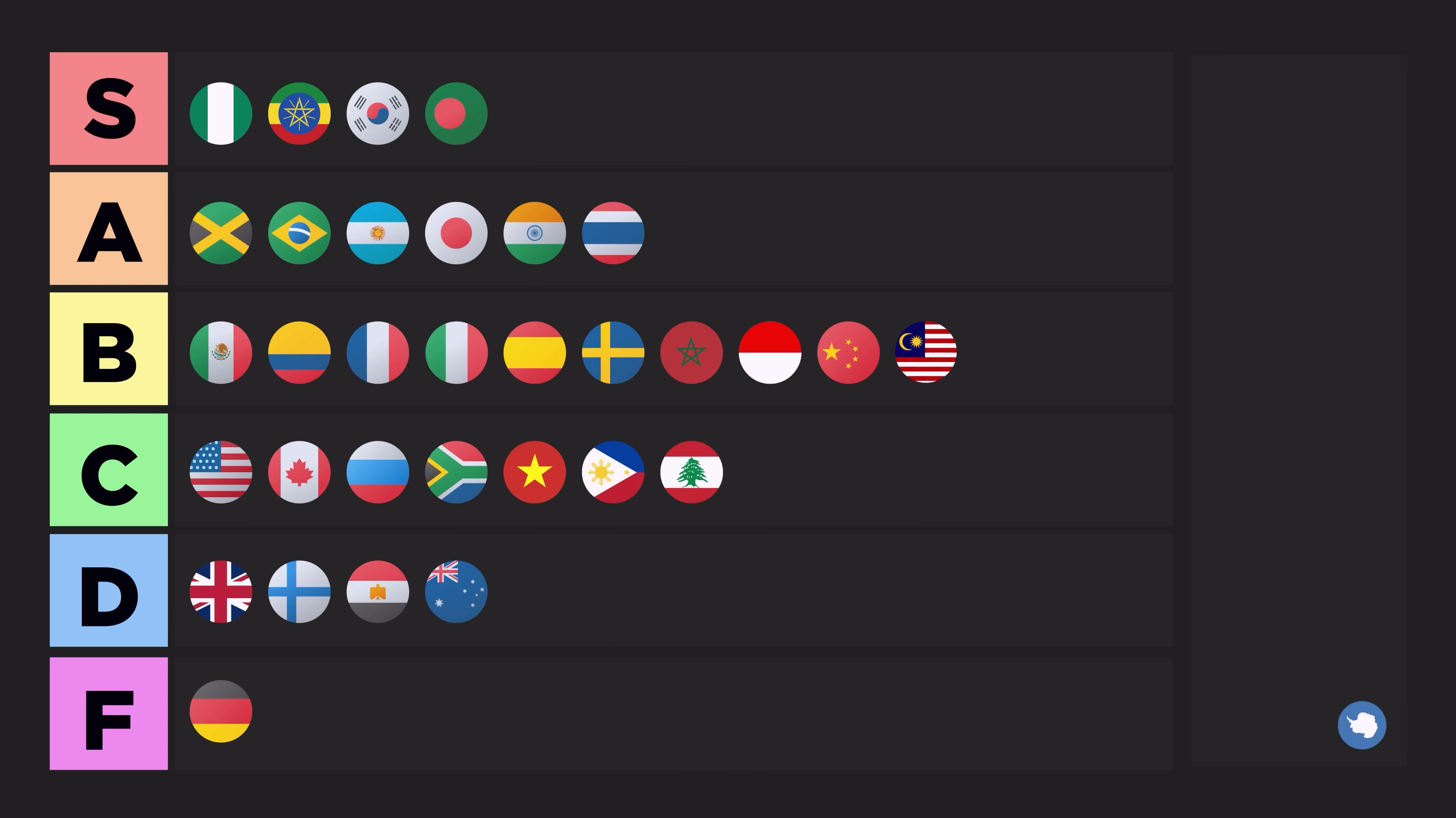 전세계 급식 먹어보고 등급 매겨봤습니다 댓글 0 조회 511 4시간전 작성자 : 갓파 좋아요 팔로우 게시글 보기 (나라-사진-등급 순으로 봐줘) 미국 C 캐나다 C 맥시코 B 자메이카 A 브라질 A 아르헨티나 A 콜롬비아 B 프랑스(코스요리) B 이탈리아 B 스페인 B 영국 D 스웨덴 B 핀란드 D 독일 F 러시아 C 모로코 B 나이지리아 S 에티오피아 S 남아프리카공화국 C 이집트 D 일본 A 한국 S 인도 A 태국 A 베트남 C 인도네시아 B 방글라데시 S 중국 B 필리핀 C 말레이시아 B 레바논 C 호주 D 갓파님의 최신 글 10.11 트럼프 한마디에 비트코인 근황 10.11 범고래 떼를 유일하게 이길 수 있는 생명체 10.11 영국 장어젤리보다 유명한 노동자 밀크티 일화 10.11 양심 개박살난 당근 알바 10.11 일본 게임에 등장한 익숙한 장면 10.11 한국인들이 즐겨먹는 라면 브랜드 회사 순위 10.11 "한국 사람들 맞아?" 캠핑족 논란 10.11 서양에서 마니아층 있는 주택 스타일 10.11 80년대생 아주머니들이 썼다는 말투 10.11 요즘 완전히 맛이 가버린 웹툰