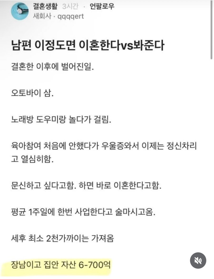 남편 이 정도면 이혼한다 vs 봐준다 댓글 0 조회 561 5시간전 작성자 : 가자가자가자고 좋아요 팔로우 게시글 보기 가자가자가자고님의 최신 글 10.11 미국 대학생들이 먹는다는 약 후기 10.11 아메리카 들소 VS 엘크 맞짱 10.11 2층에서 떨어질뻔한 댕댕이 10.11 삼성이 지도에서 일본을 지워버린 이유 10.11 (약혐) 의외로 은근 무섭다는 뇌 재부팅 치료방식 10.11 잘생기고 능력없는 남자 만나봤는데 10.11 오프라인 체스 썰.. 10.11 배우자 연봉을 몰라도 결혼이 가능한 국가 10.11 지구 "호모 사피엔스들아 너무 내 몸 걱정하지 마렴" 10.11 싱글벙글 닌텐도 갤러리 올타임 레전드