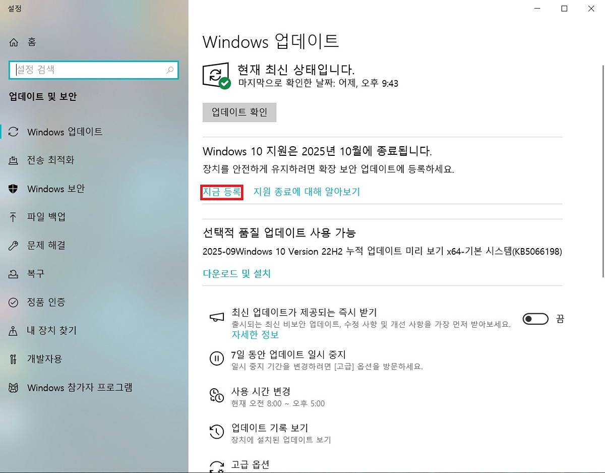 그러면 보안업데이트 날짜가 내년 10월13일까지 연장된걸 볼 수 있음