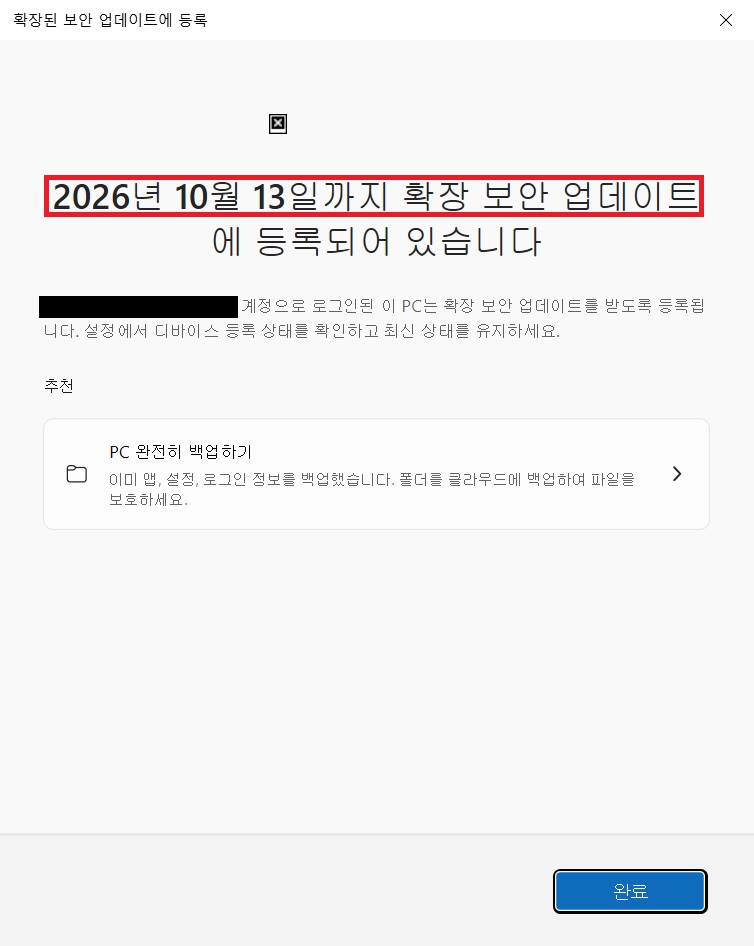 그럼 이제 내년까지 보안 업데이트 등록이 되었다고 뜰꺼임!
