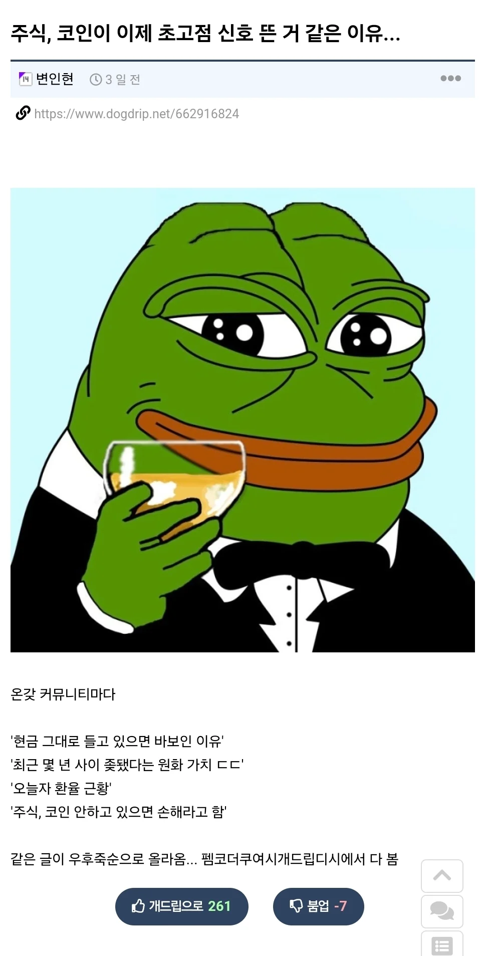 커뮤니티 고점론은 ㄹㅇ인 거 같네 댓글 0 조회 522 3시간전 작성자 : 관셈보살 좋아요 팔로우 게시글 보기 글 올린 지 얼마 안돼서 슨피, 비트코인 모두 조정 옴 ㅋㅋㅋ 관셈보살님의 최신 글 10.12 미국 맥도날드에서 인종차별 당한 한국인 근황 10.12 교사 여자친구의 결혼조건 10.12 30대 여직원 지능 논란 10.12 온리팬스 모델겸 페미니스트를 말로 패는 촉법소년 10.12 남자 성형에 대한 2030 여성들의 반응 10.12 요즘 대단지 아파트들이 갈수록 외부인 틀어막는 이유 10.12 친구니 이해한다 VS 뿜빠이는 아니다 10.12 콘돔 사면서 편순이 성희롱하는 영포티 10.12 성경에 공룡이 없는 이유 10.12 어느 강아지의 봄 여름 가을 겨울