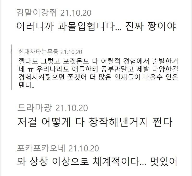 포켓몬스터 개발 당시 제작 노트 댓글 0 조회 541 4시간전 작성자 : 강승 좋아요 팔로우 게시글 보기 강승님의 최신 글 10.12 미국 맥도날드에서 인종차별 당한 한국인 근황 10.12 교사 여자친구의 결혼조건 10.12 30대 여직원 지능 논란 10.12 온리팬스 모델겸 페미니스트를 말로 패는 촉법소년 10.12 남자 성형에 대한 2030 여성들의 반응 10.12 요즘 대단지 아파트들이 갈수록 외부인 틀어막는 이유 10.12 친구니 이해한다 VS 뿜빠이는 아니다 10.12 콘돔 사면서 편순이 성희롱하는 영포티 10.12 성경에 공룡이 없는 이유 10.12 어느 강아지의 봄 여름 가을 겨울