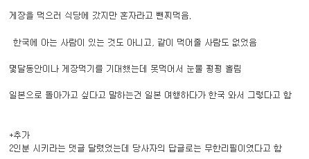 한국에 온 외국 여성이 펑펑 운 이유 댓글 0 조회 504 4시간전 작성자 : 네이마르로 좋아요 팔로우 게시글 보기 네이마르로님의 최신 글 10.12 미국 맥도날드에서 인종차별 당한 한국인 근황 10.12 교사 여자친구의 결혼조건 10.12 30대 여직원 지능 논란 10.12 온리팬스 모델겸 페미니스트를 말로 패는 촉법소년 10.12 남자 성형에 대한 2030 여성들의 반응 10.12 요즘 대단지 아파트들이 갈수록 외부인 틀어막는 이유 10.12 친구니 이해한다 VS 뿜빠이는 아니다 10.12 콘돔 사면서 편순이 성희롱하는 영포티 10.12 성경에 공룡이 없는 이유 10.12 어느 강아지의 봄 여름 가을 겨울