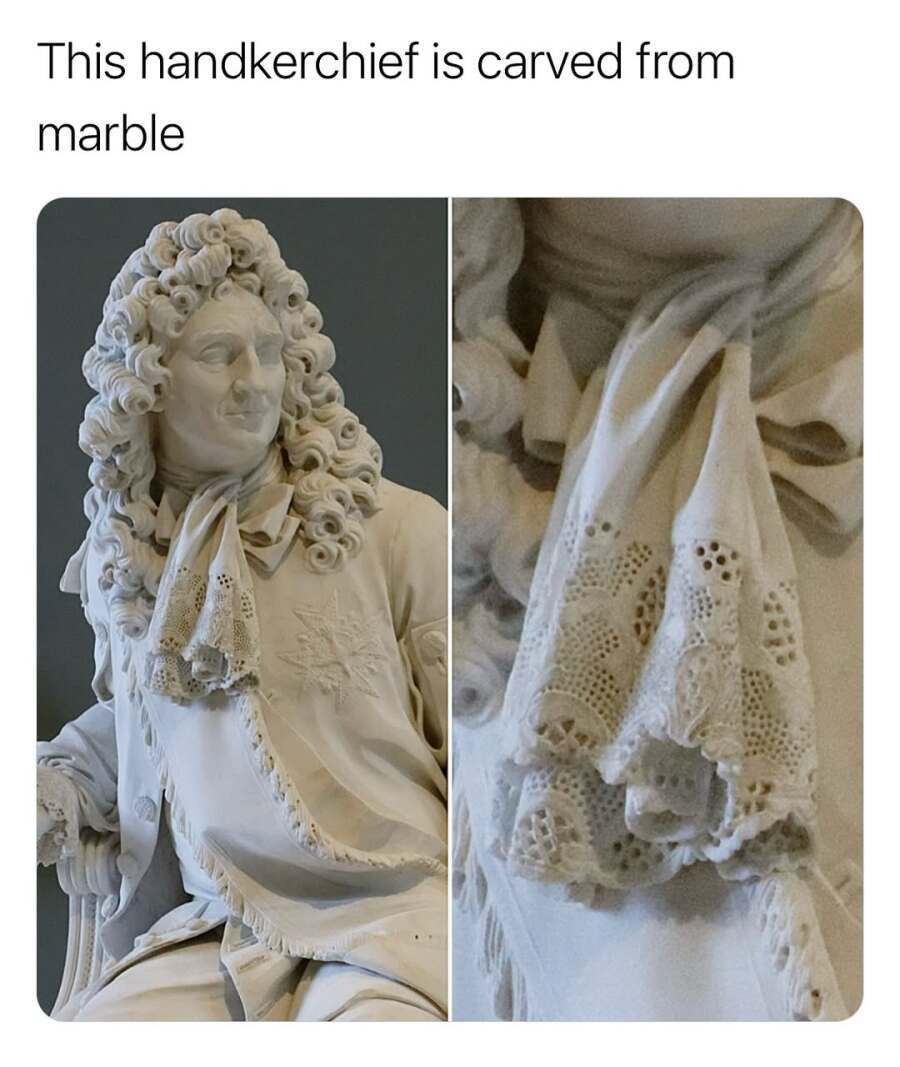 1781년 조각상의 정밀함 수준 ㄷㄷ 댓글 0 조회 567 9시간전 작성자 : 대박노 좋아요 팔로우 게시글 보기 1781년 프랑스 조각가 루이 필립 무시(Louis-Philippe Mouchy)가 조각한 샤를 드 생트 모르(Charles de Sainte-Maure) 몽토지에 공작의 대리석상 대박노님의 최신 글 10.15 트위터에서 난리난 미국 가족 10.15 낭만 있는 게임회사의 팬서비스 10.15 잠깐 주차했다가 64000원 나온 사람 10.15 캄보디아 관련 베트남 반응 10.15 "여자는 원래 그런 종족입니다 그냥 끼워주지 마세요" 10.15 캄보디아보다 심했던 엘살바도르근황 10.15 일하다 갑자기 서러움터진 배달기사 10.15 방학 업무도 빡세다는 교사를 본 디시인 10.15 명량대첩은 운이 좋아서 이긴 거라는 사람 10.15 어제 튀르키예에서 대형사고 날 뻔함