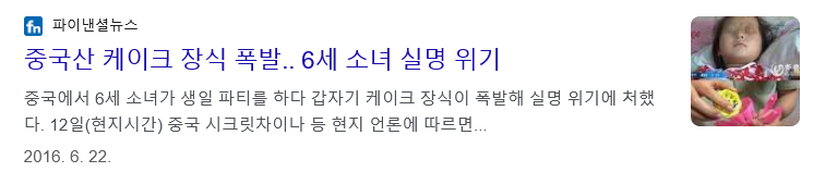 미국에서 수십년 동안 실명 사고 일으키는 위험한 음식 댓글 0 조회 514 5시간전 작성자 : 대박노 좋아요 팔로우 게시글 보기 는 생일 케이크 생일 케이크 초를 끄려고 얼굴은 가까이 붙이면 친구나 가족이 일부러 얼굴을 케이크로 밀어서 생크림이 묻은 얼굴을 보면 웃는 장난을 자주 하는데 문제는 2,3단 케이크 라면 요런 케이크 지지대를 사용하기도 하고 1단 케이크라도 케이크 고정핀이 박히거나 운 나쁘면 양초가 눈에 박히기도 함 미국만 아니라 한국, 프랑스, 영국, 중국, 일본 어지간한 나라 대부분 생일케이크로 장난치다 실명당하는 사고 뉴스 다 있음 중국에서는 케이크가 폭발 하는 사건이 발생 대박노님의 최신 글 10.15 자동차 스티커 올타임 넘버원 10.15 유럽에서 예의 없다고 욕먹는 동양인 10.15 MIT에서 개발 중인 "혈전 제거 로봇" 10.15 한국군 별 9개를 제거한 북한 특공대원 10.15 약혐) 베이루트 폭발 후폭풍의 위력 10.15 집값 15억 넘으면 주담대 한도 4억·25억 초과시 2억 10.15 전기선 자르다가 죽을뻔한 사람 10.15 큰일났다 소개팅 주선자랑 잤다 10.15 돈 밖에 모르는 자수성가 억만장자 10.15 현대 아이오닉5 배터리 내구 성능