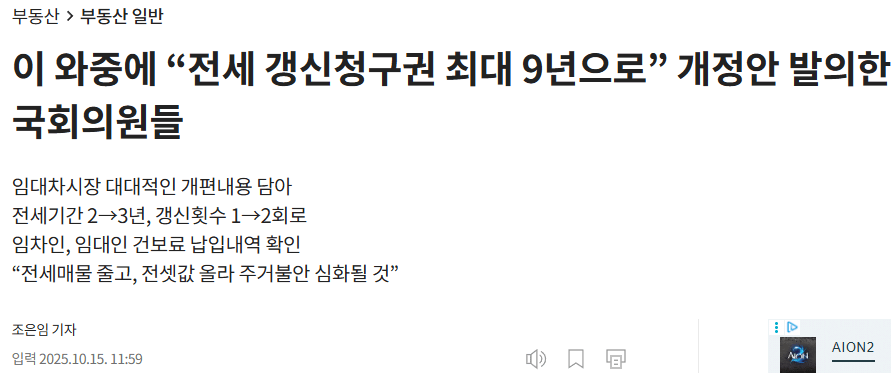 이 와중에 “전세 갱신청구권 최대 9년으로” 개정안 발의한 국회의원들 - 조선비즈