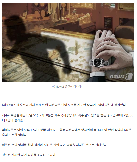 제주 금은방서 1400만원어치 털어 도주 중국인 3명 공항서 붙잡혀 댓글 0 조회 552 10.15 22:03 작성자 : 감정괴물 좋아요 팔로우 게시글 보기 감정괴물님의 최신 글 10.15 블박 차주가 태어나서 처음 봤다는 화물차 상태 10.15 옛날 피자헛 피자 감성 10.15 세금 낭비라고 욕쳐먹었던 함평 황금박쥐상 가격 근황 10.15 회사 이름 쎄보이는 남자가 좋음 10.15 고등학교 교사 장단점 10.16 권은비, 일본 공연 꼭노 영상 10.15 예전 미국 밀가루 포대가 화려한 디자인이었던 이유 10.15 카페인 끊기 4일차 놀라운 몸의 변화 10.15 미쳐버린 오버워치 근황 ㅋㅋㅋ 10.15 인간에게 육아 맡기는 곰