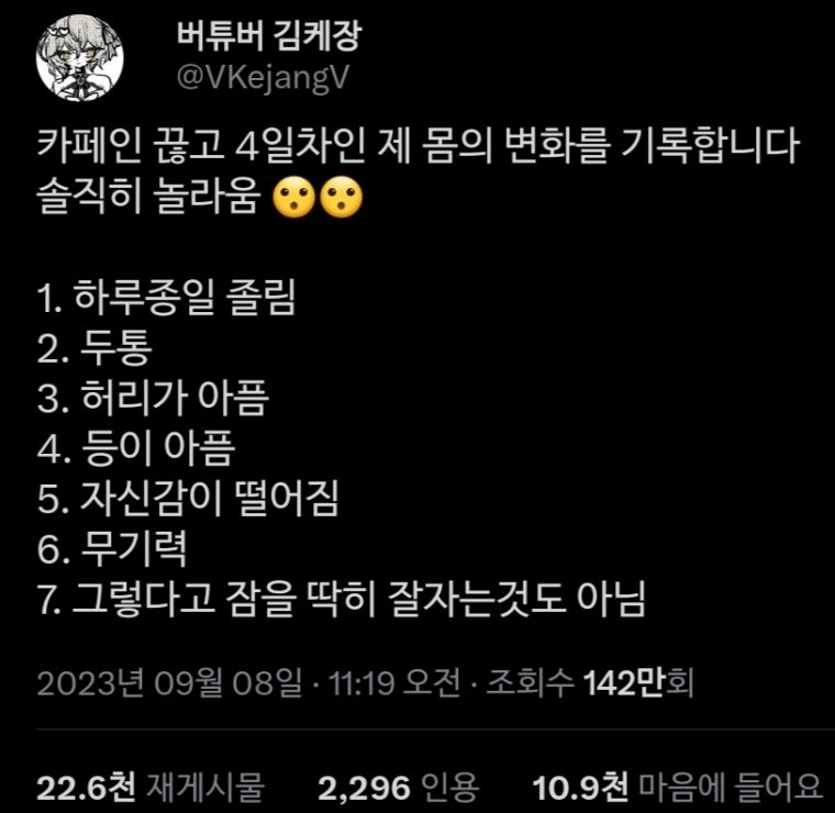 카페인 끊기 4일차 놀라운 몸의 변화 댓글 0 조회 502 10.15 21:04 작성자 : 가비슈포댄서 좋아요 팔로우 게시글 보기 가비슈포댄서님의 최신 글 10.15 블박 차주가 태어나서 처음 봤다는 화물차 상태 10.15 옛날 피자헛 피자 감성 10.15 세금 낭비라고 욕쳐먹었던 함평 황금박쥐상 가격 근황 10.15 회사 이름 쎄보이는 남자가 좋음 10.15 고등학교 교사 장단점 10.16 권은비, 일본 공연 꼭노 영상 10.15 예전 미국 밀가루 포대가 화려한 디자인이었던 이유 10.15 카페인 끊기 4일차 놀라운 몸의 변화 10.15 미쳐버린 오버워치 근황 ㅋㅋㅋ 10.15 인간에게 육아 맡기는 곰