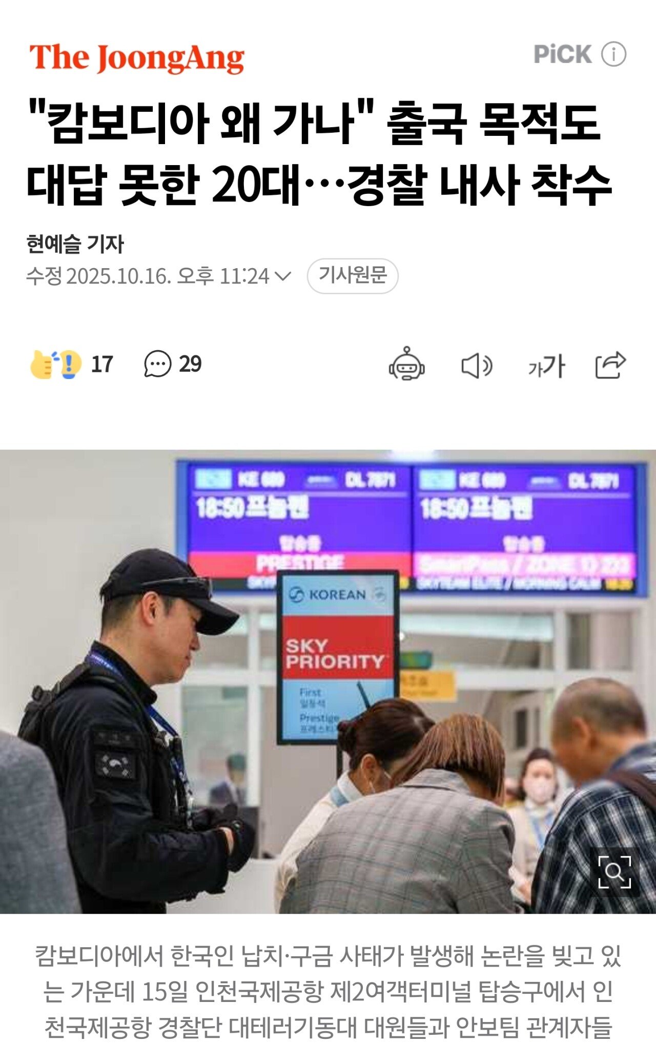 "캄보디아 왜 가나" 출국목적 대답못한 20대