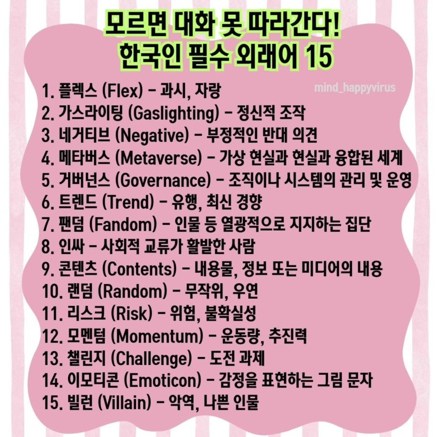 한국인 필수 외래어 TOP 15