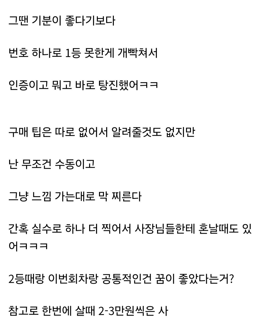 저번주 로또 1등 당첨 인증한 로또 갤러리 유저 댓글 0 조회 524 10.20 20:16 작성자 : 대박노 좋아요 팔로우 게시글 보기 와 올해 로또 갤러리에서 1등 인증만 몇번 나오는거지 ㅋㅋ 대박노님의 최신 글 10.20 전세계 아이폰 가격 근황 10.20 외모와 말투에서 기품이 느껴지는 어르신 10.20 고도비만인지 점잖게 물어보는 방법 10.20 제주도에서 군복과 군화 파는 곳을 찾는 사람 10.20 작년에 김천 김밥축제가 조져버린 이유 10.20 부잣집 배달 갔다가 교수한테 욕먹음 10.20 바지락은 그냥 씹어먹는 복어 치악력 10.20 어메이징.. 요즘 대학교 근황 10.20 딸 분들 재산 솔직히 받으시나요..? 10.20 김현지와 이재명 과거영상 뜸!!!