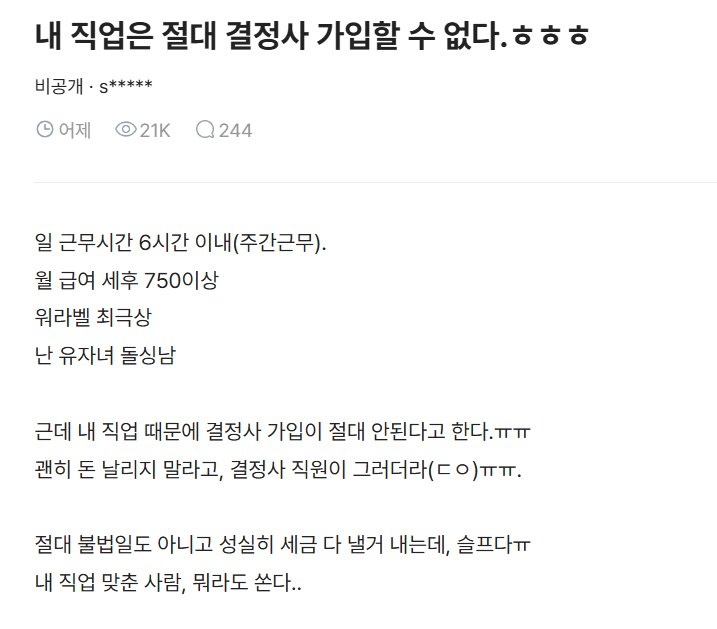 내 직업은 결정사 가입이 안된다 댓글 0 조회 535 10.20 22:31 작성자 : 가자가자가자고 좋아요 팔로우 게시글 보기 뭘까요? ㄷㄷ 가자가자가자고님의 최신 글 10.20 전세계 아이폰 가격 근황 10.20 외모와 말투에서 기품이 느껴지는 어르신 10.20 고도비만인지 점잖게 물어보는 방법 10.20 제주도에서 군복과 군화 파는 곳을 찾는 사람 10.20 작년에 김천 김밥축제가 조져버린 이유 10.20 부잣집 배달 갔다가 교수한테 욕먹음 10.20 바지락은 그냥 씹어먹는 복어 치악력 10.20 어메이징.. 요즘 대학교 근황 10.20 딸 분들 재산 솔직히 받으시나요..? 10.20 김현지와 이재명 과거영상 뜸!!!