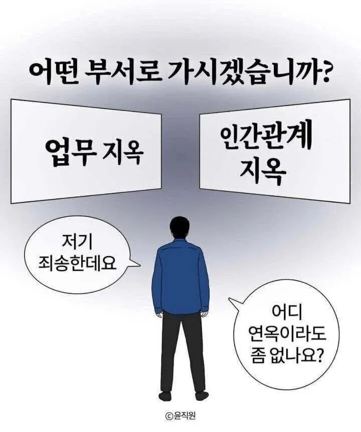 직장인마다 갈린다는 부서 선택 댓글 0 조회 597 9시간전 작성자 : 돌잔치앤가반나 좋아요 팔로우 게시글 보기 업무 지옥 + 좋은 인간관계 vs 널널한 업무 + 지옥같은 인간관계 돌잔치앤가반나님의 최신 글 10.21 수녀님한테 "씨발놈의 새끼"라는 소리 들었던 일 10.21 멕시코 사는 한국인이 느끼는 "한국의 불편함" 10.21 전기세 밀린 홈플러스 ㅎㄷㄷ 10.21 로스트아크 모바일 보X 검열 근황 10.21 여자들의 오X 품앗이.mp4 10.21 전직 대통령 재산 수집이 취미인 사람 10.21 스위스 시계업계의 ㄸ라이가 만든 시계 10.21 오늘밤은 안재운다는 여친 10.21 니네도 행복해라.blind 10.21 오랜 첫사랑을 끝낸 여학생