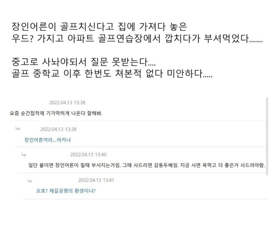 장인어른 골프채로 깝치다 부숴먹었는데 어카냐 댓글 0 조회 565 3시간전 작성자 : 개장수11 좋아요 팔로우 게시글 보기 개장수11님의 최신 글 10.22 서울 상급지 한 방에 정리 10.22 요즘 변호사 사무실에 심심치않게 들어오는 상담 10.22 서울 VS 대구 월세 체감 10.22 한국에서 기후 위기가 잘 체감 안 되는 이유 10.22 공사장에 고양이가 돌아다녀 화난 아재들 10.22 일본군이었던 심영순씨의 파란만장한 인생 10.22 미국 국방부 대변인 "니 엄마가 사줌" 10.22 마약 중독자의 모습을 그린 만화가가 말한 허구적 요소 10.22 어느 헬스 트레이너의 수업 10.22 네덜란드 길 바닥에서 볼 수 있는 작은 명판