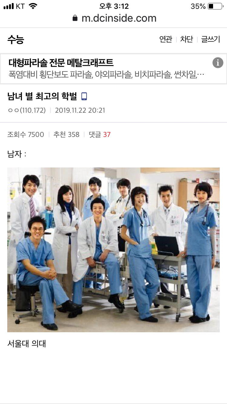 수능 갤러리가 인정하는 남녀별 최고의 학벌