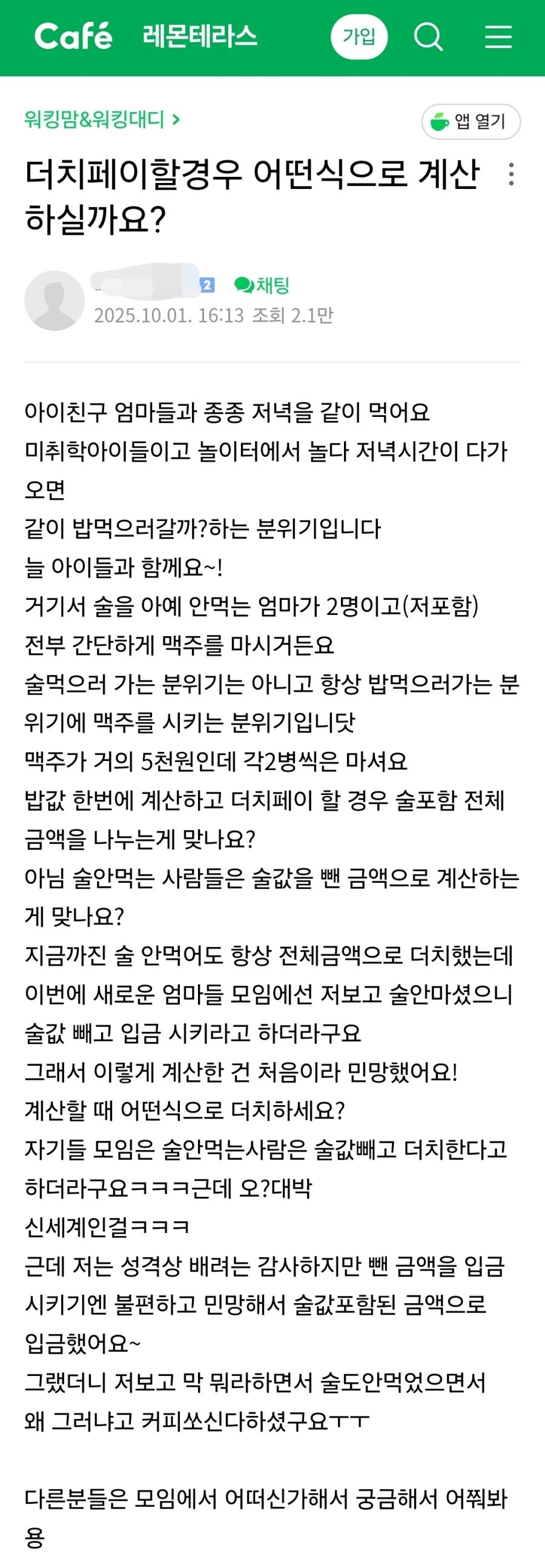 여자모임 술자리 더치페이 논란 댓글 0 조회 507 10.22 20:18 작성자 : 대박노 좋아요 팔로우 게시글 보기 대박노님의 최신 글 10.23 권은비, 일본 공연 꼭노 영상 10.22 여자모임 술자리 더치페이 논란 10.22 앞차한테 하이빔 쏘고 클락션 오지게 누른 이유 10.22 지능 수준이 엄청나다는 보더콜리의 행동 10.22 10개 이상 못 찾으면 치매초기 10.22 일 안배우고 먼저 퇴근해버린 신입 간호사 10.22 한국전력 미쳐버린 근황 ㄷㄷ 10.23 건진법사, 김건희가 받은 그라프 목걸이·샤넬 가방 제출 10.22 카카오톡 기본 이모티콘 삭제되고 열화버전 들어옴 10.22 화제의 충북대 로스쿨 면접 후기