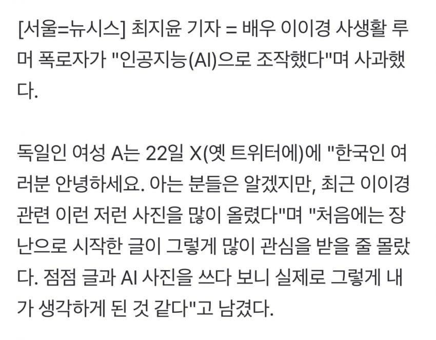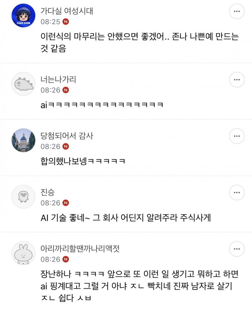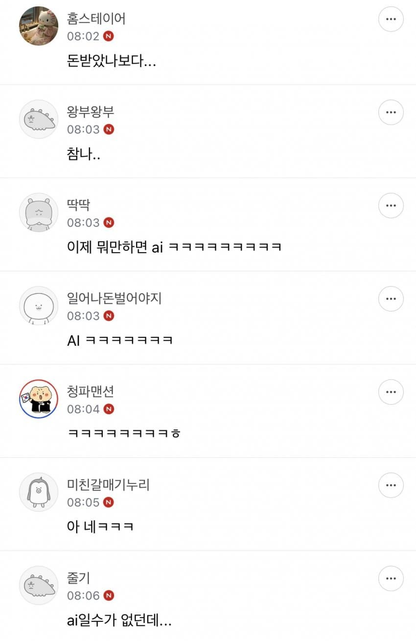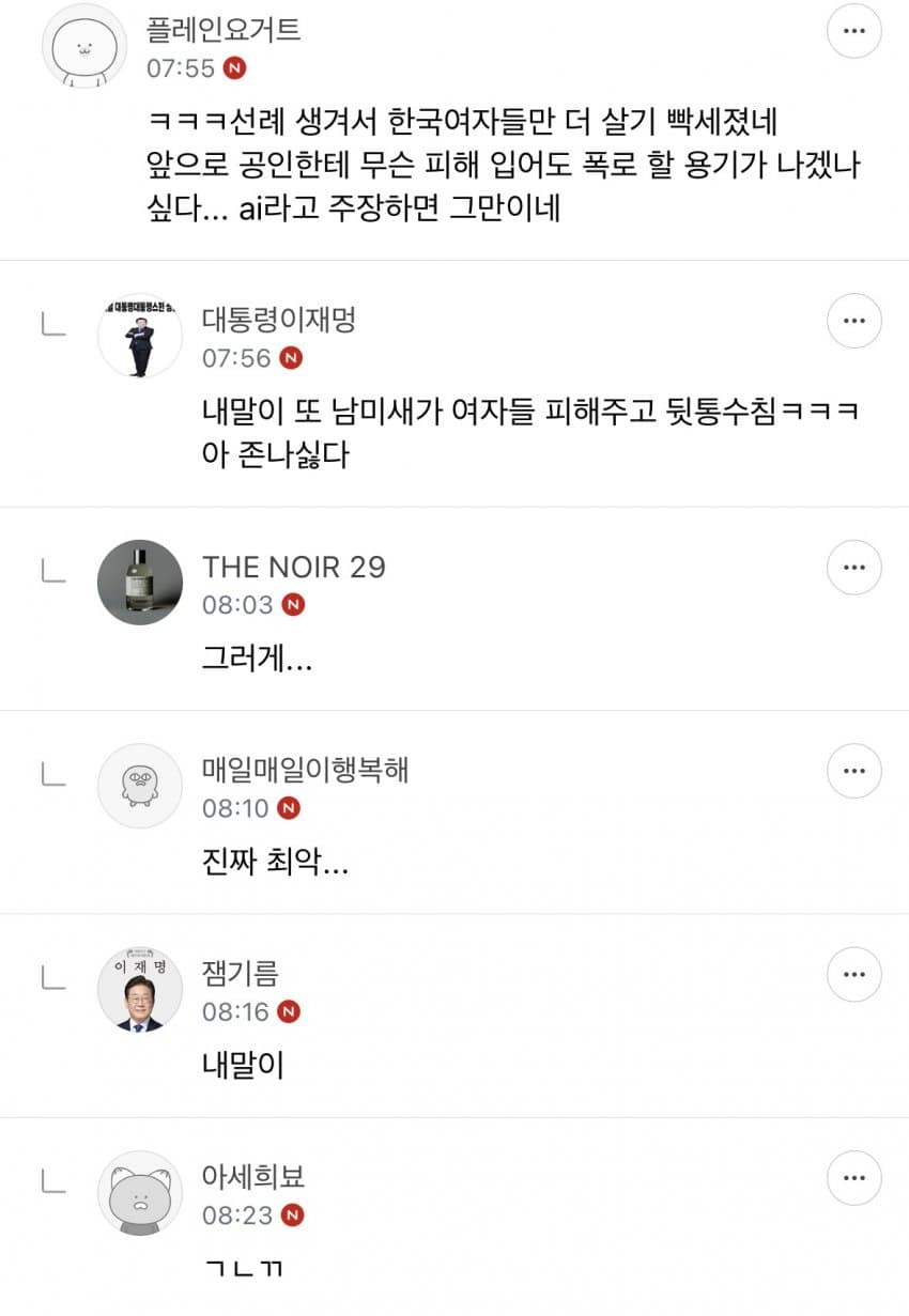 이이경 AI피해… 여초카페 일부 반응 댓글 0 조회 518 4시간전 작성자 : 가비슈포댄서 좋아요 팔로우 게시글 보기 가비슈포댄서님의 최신 글 10.23 이이경 AI피해… 여초카페 일부 반응 10.23 네이버에서 적발된 중국 댓글 부대 10.23 권은비, 일본 공연 꼭노 영상 10.22 여자모임 술자리 더치페이 논란 10.22 앞차한테 하이빔 쏘고 클락션 오지게 누른 이유 10.22 지능 수준이 엄청나다는 보더콜리의 행동 10.22 10개 이상 못 찾으면 치매초기 10.22 일 안배우고 먼저 퇴근해버린 신입 간호사 10.22 한국전력 미쳐버린 근황 ㄷㄷ 10.23 건진법사, 김건희가 받은 그라프 목걸이·샤넬 가방 제출