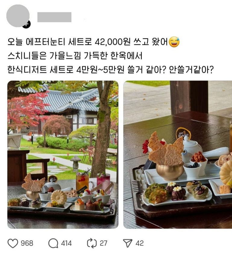 42,000원이라는 한옥 애프터눈 티 세트 댓글 0 조회 504 6시간전 작성자 : 가자가자가자고 좋아요 팔로우 게시글 보기 가자가자가자고님의 최신 글 10.23 대형 사고를 칠 예정인 울나라 교회 10.23 국내 클래식카 동호회에 모인 자동차 10.23 트럼플 아들내미 "장기 팔아서 비트코인 매수하셈" 10.23 도시개발중 출토된 유물 10.23 바래 바라 든 던 구분하는 사람 호감임 10.23 요즘 애니메이션 업계에서 나름 심각해진 경향 10.23 의외로 실제로 있는 생물 10.23 중학교때 친구 자살한 썰 10.23 미국 방문 당시 스스로 환영식을 한 젤렌스키 10.23 서민이라도 3인가족까진 살만 합니다