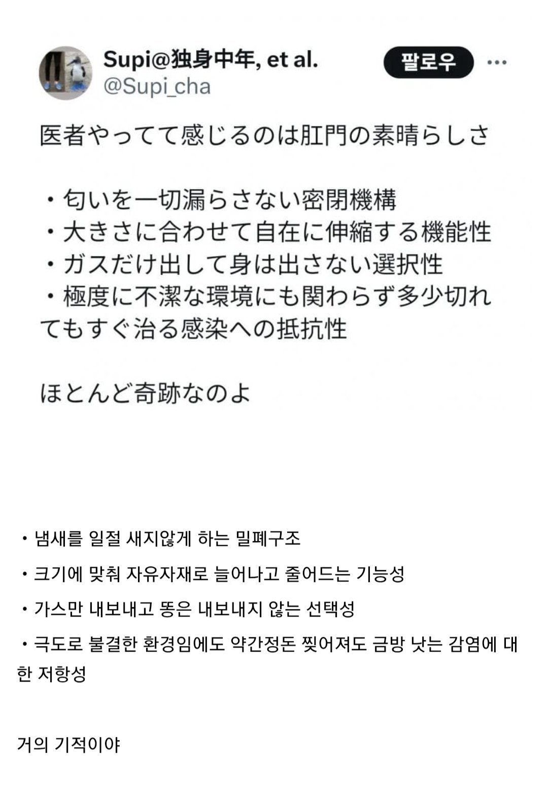 항문의 위대함 댓글 0 조회 568 6시간전 작성자 : 공룡 좋아요 팔로우 게시글 보기 공룡님의 최신 글 10.23 대형 사고를 칠 예정인 울나라 교회 10.23 국내 클래식카 동호회에 모인 자동차 10.23 트럼플 아들내미 "장기 팔아서 비트코인 매수하셈" 10.23 도시개발중 출토된 유물 10.23 바래 바라 든 던 구분하는 사람 호감임 10.23 요즘 애니메이션 업계에서 나름 심각해진 경향 10.23 의외로 실제로 있는 생물 10.23 중학교때 친구 자살한 썰 10.23 미국 방문 당시 스스로 환영식을 한 젤렌스키 10.23 서민이라도 3인가족까진 살만 합니다