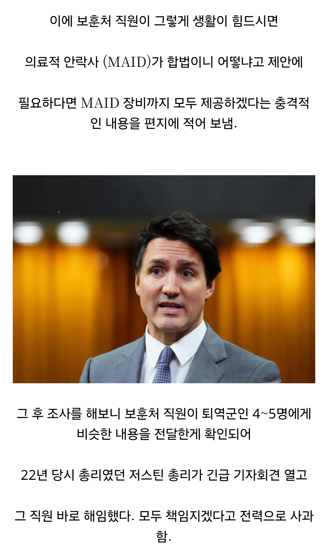 퇴역 군인한테 안락사를 권유한 캐나다 보훈처 댓글 0 조회 580 6시간전 작성자 : 더한마음 좋아요 팔로우 게시글 보기 퇴역군인이 지원 요구하자 "안락사 하쉴?" ㅇㅈㄹ 더한마음님의 최신 글 10.23 "명성황후 침실" 문 열라 했다…尹전 대통령 부부, 곤녕합 단둘이 10분 10.23 교촌 치킨 결국 항복 선언 10.23 유모차 애엄마 뺑소니 치고 달아나는걸 목격한 시민 10.23 초등학생의 부업 10.23 일론 머스크 "한국 삼겹살 정말 맛있어" 10.23 진짜 바쁜 직장인 특징 ㄹㅇ 10.23 이따구로 생긴 뚜껑 열 때마다 하는 행동 10.23 최근 새로운 인물사진 공개됐다는 한국 위인 10.23 제주 올레시장 오징어 바가지 반전 10.23 인류가 발견한 가장 거대한 항성