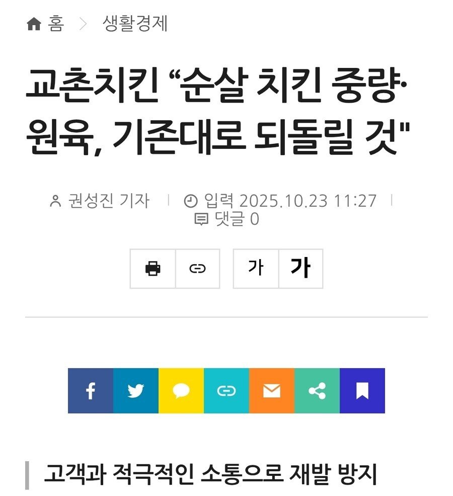 교촌 치킨 결국 항복 선언 댓글 0 조회 582 10.23 20:15 작성자 : 관셈보살 좋아요 팔로우 게시글 보기 중량 줄여서 신나게 뚜까 맞더니 다시 원상복구 한다고 함 https://www.ziksir.com/news/articleView.html?idxno=108989 관셈보살님의 최신 글 10.23 대한민국 날씨 근황 10.23 의외로 현실에서 가능하다는 자세 10.24 권은비, 일본 공연 꼭노 영상 10.23 연세대 강의실 콘돔 ㄷㄷ 10.23 엘리자베스 2세 여왕 방한 당시 두 기업의 신경전 10.23 잘 몰랐던 식품 소비기한 10.23 배달하다 향냄새를 맡은 배달 라이더 10.23 수면바지 입는 알바에게 문자보낸 점장님 10.23 열심히 살고 있다는 흙수저 10.23 여자친구가 라식 수술함