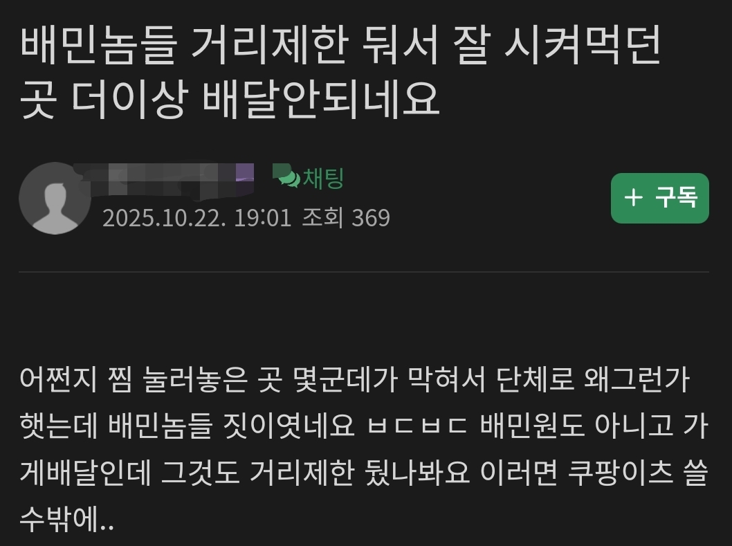 최근 한두달사이 배민 주문량이 줄어든 이유중 하나