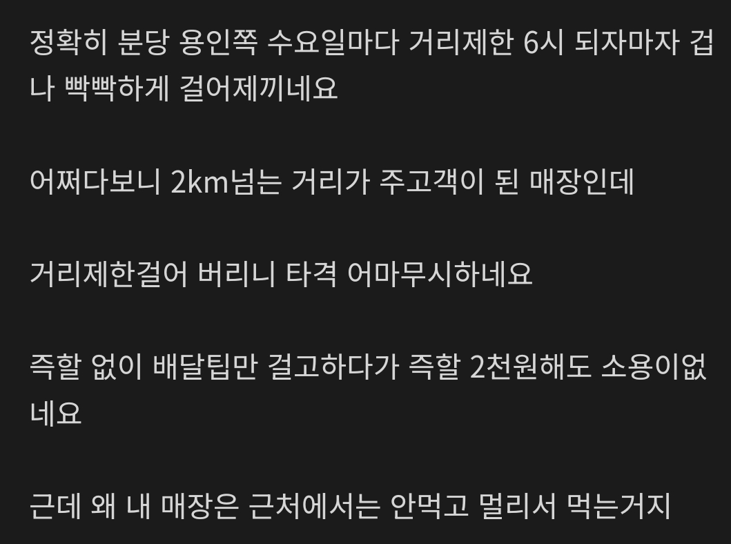 최근 한두달사이 배달료 단가를 더 떨굼 (전에도 떨굼)