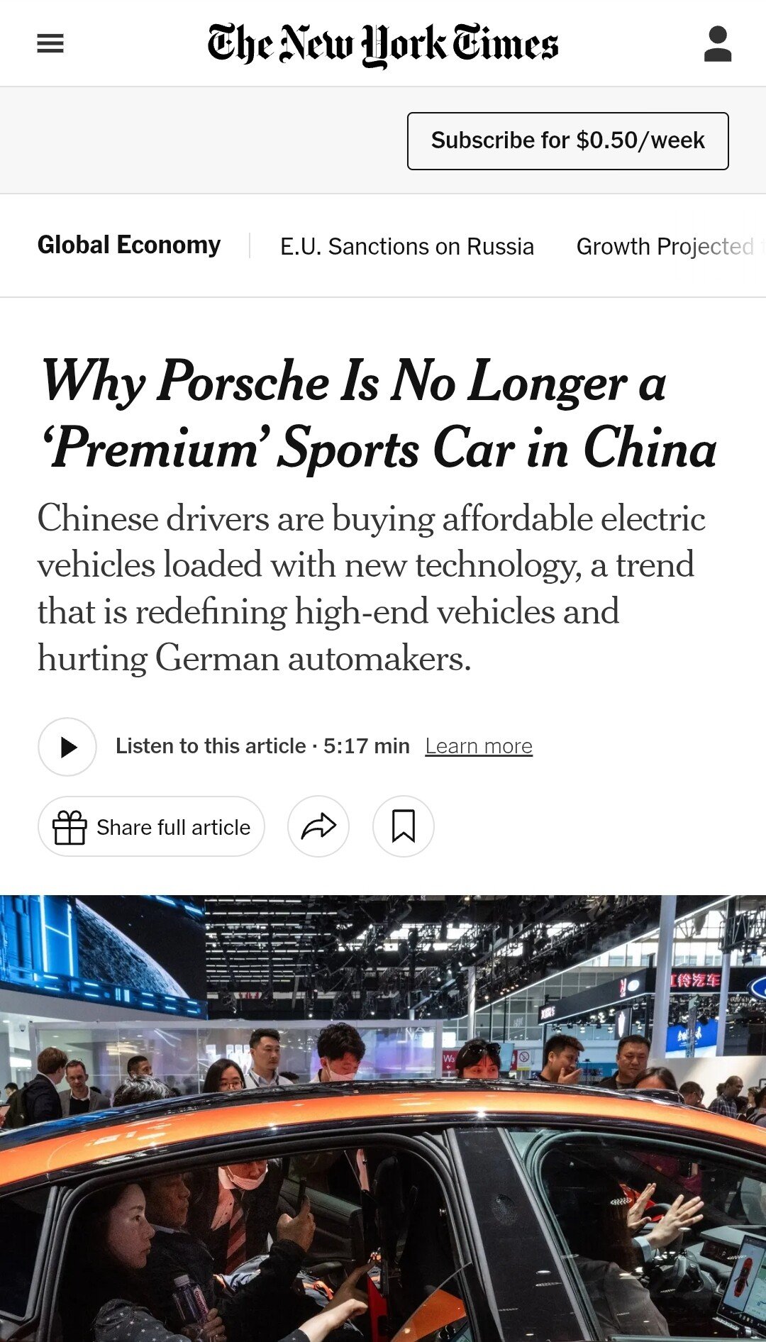 [ NYT : 중국내에서 포르쉐의 프리미엄 이미지 추락중 ]