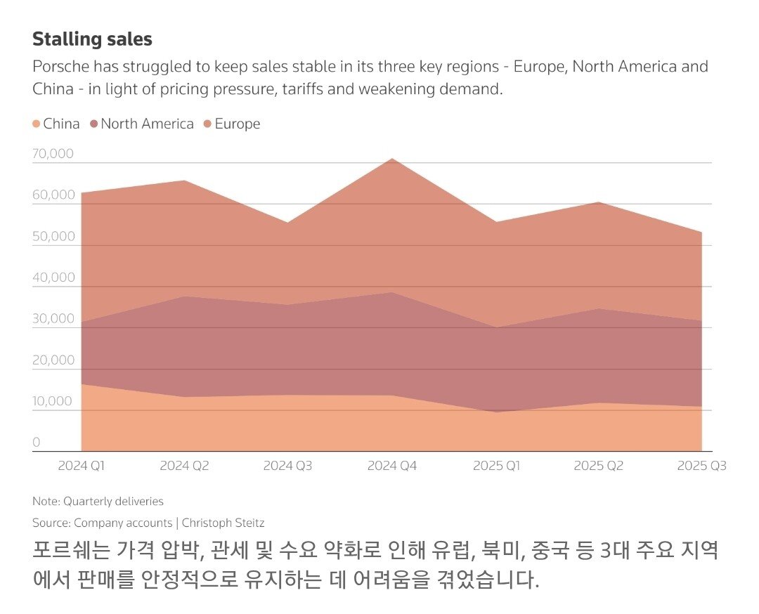 [ 포르쉐 3대 시장 : 북미,유럽,중국 , ㅊㅊ: 로이터 ]