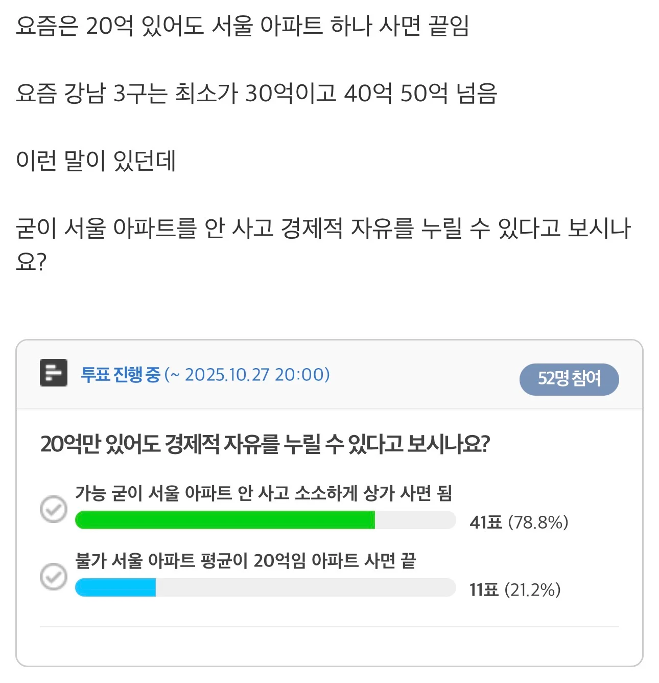 20억으로 경제적 자유가 가능하다 VS 안된다