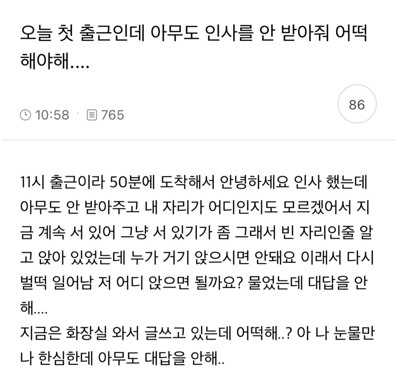 오늘 첫 출근인데 아무도 인사를 안 받아줘 어떡해야해..