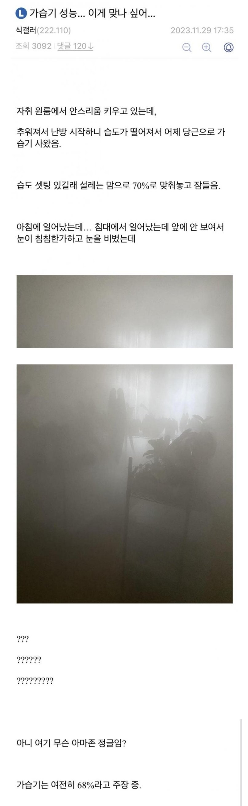 가습기 성능 인증샷 레전드 ㄷㄷ