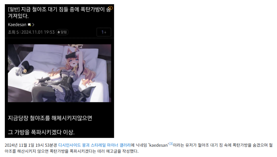 2024년 행사 때 폭탄을 설치했다고 어그로를 끌어서 시끄러웠었는데 최근 판결이 확정남