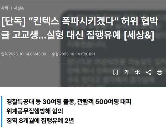 [단독] “킨텍스 폭파시키겠다” 허위 협박 글 고교생…실형 대신 집행유예 [세상&] - 헤럴드경제