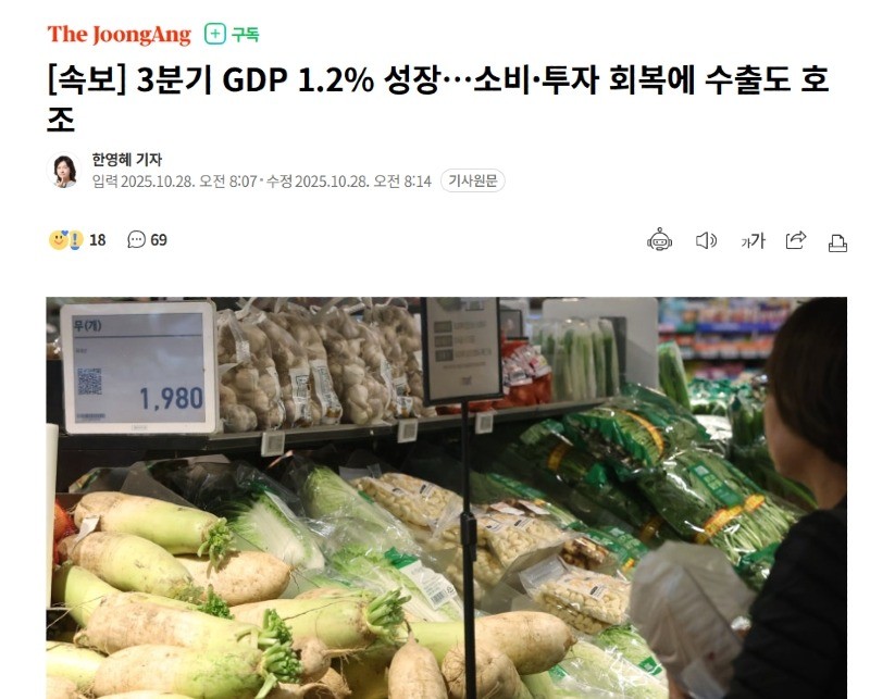 3분기 GDP 1.2% 성장…소비·투자 회복에 수출도 호조