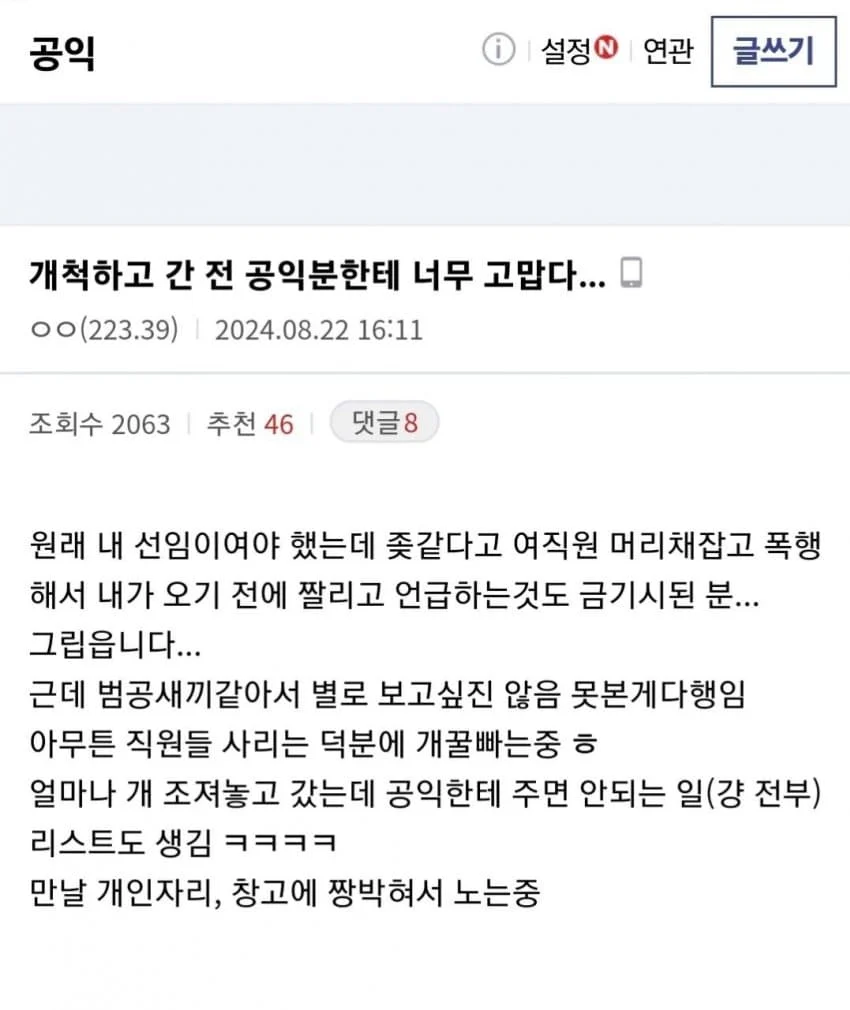 선임 덕분에 꿀 빠는 공익