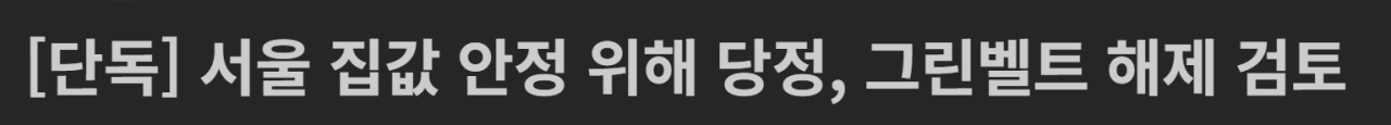 서울 집값 안정 위해 당정, 그린벨트 해제 검토