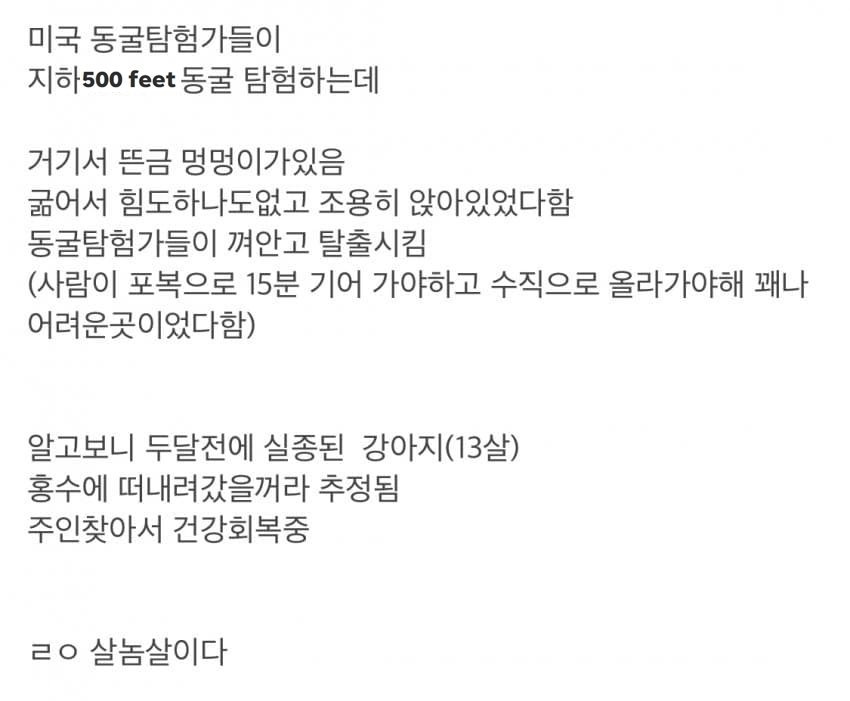 홍수에 떠내려갔다 지하 200미터 아래 발견된 강아지