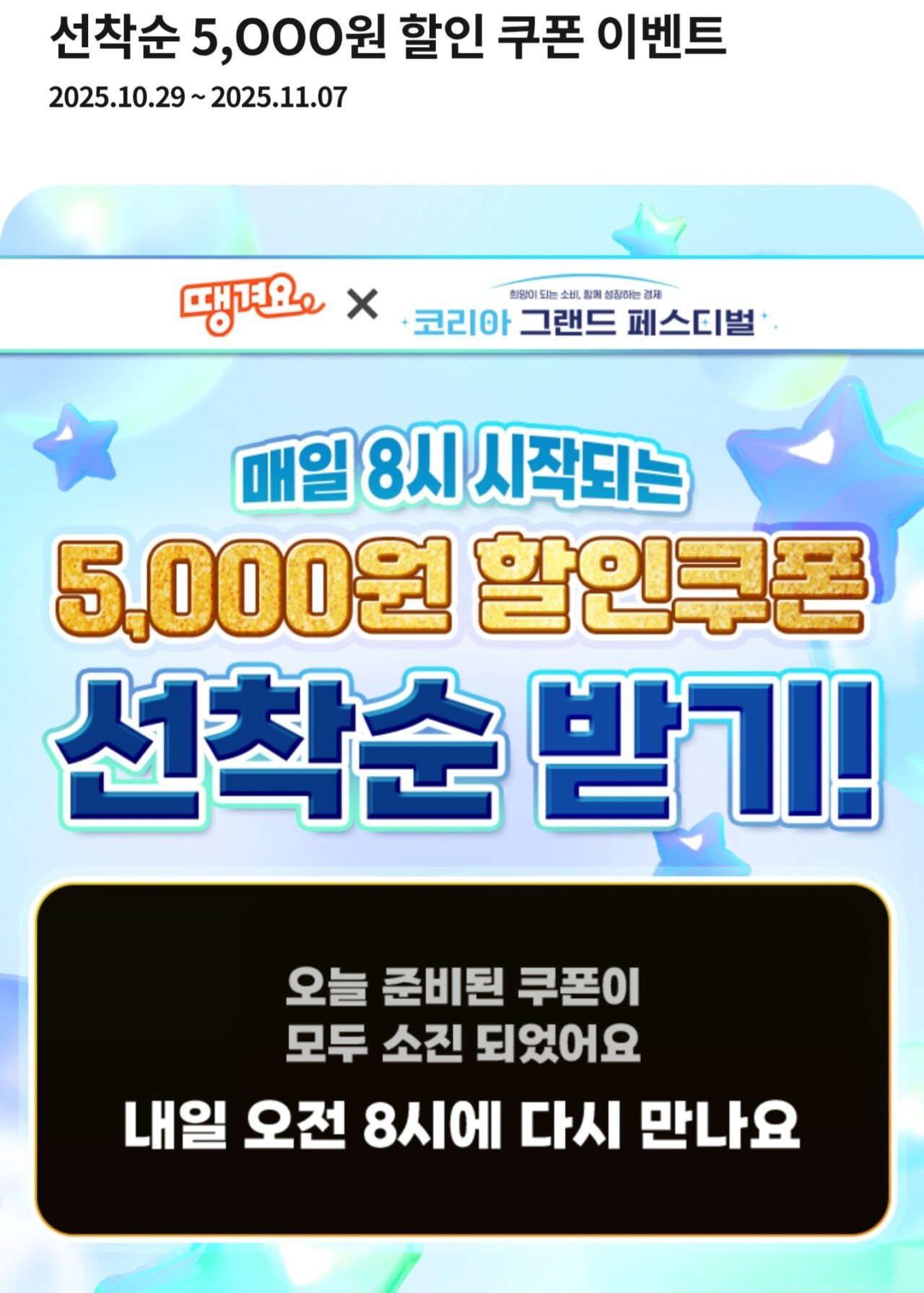 땡겨요 다시 5,000원 쿠폰 이벤트 진행중