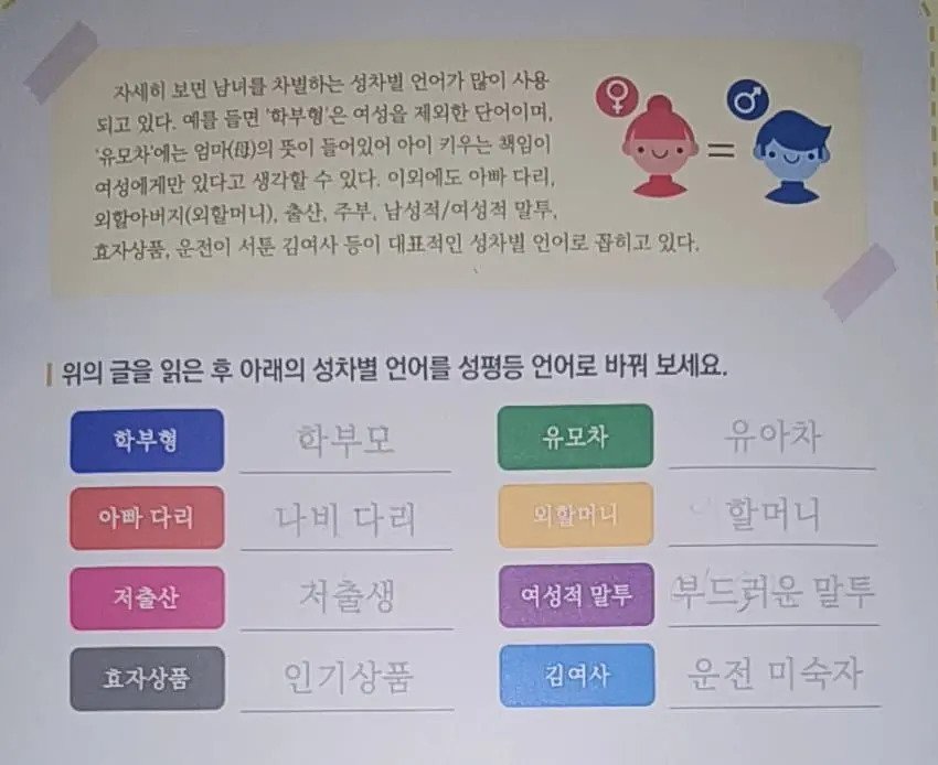 요즘 중학생 성평등 교육자료 논란