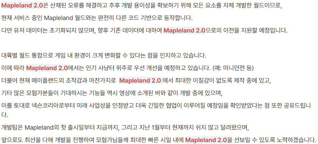 내년 상반기 출시 예정인 메이플랜드 최신 소식