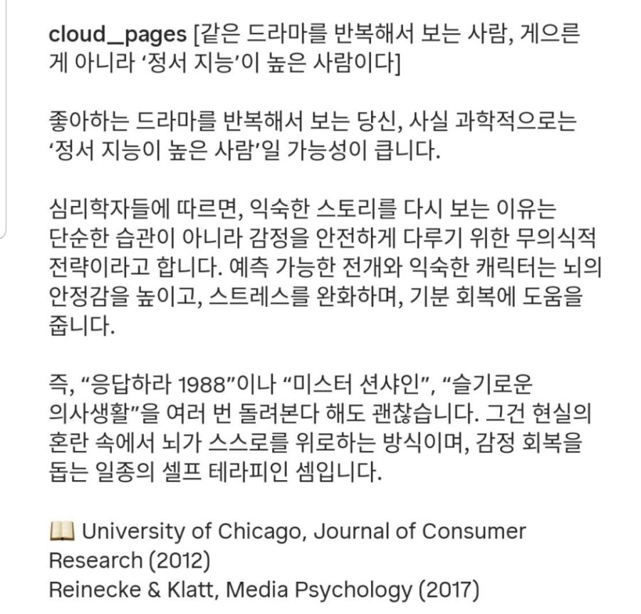 같은 드라마 계속 돌려보는 사람은 정서지능이 높다