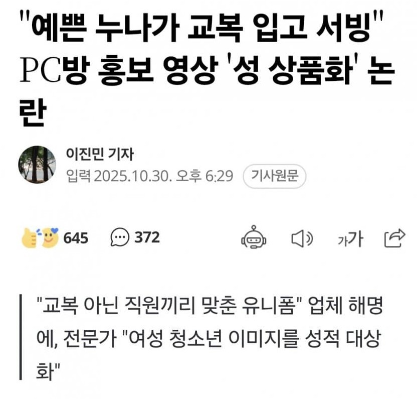 "교복입고 서빙" 현재 논란중인 김해 PC방